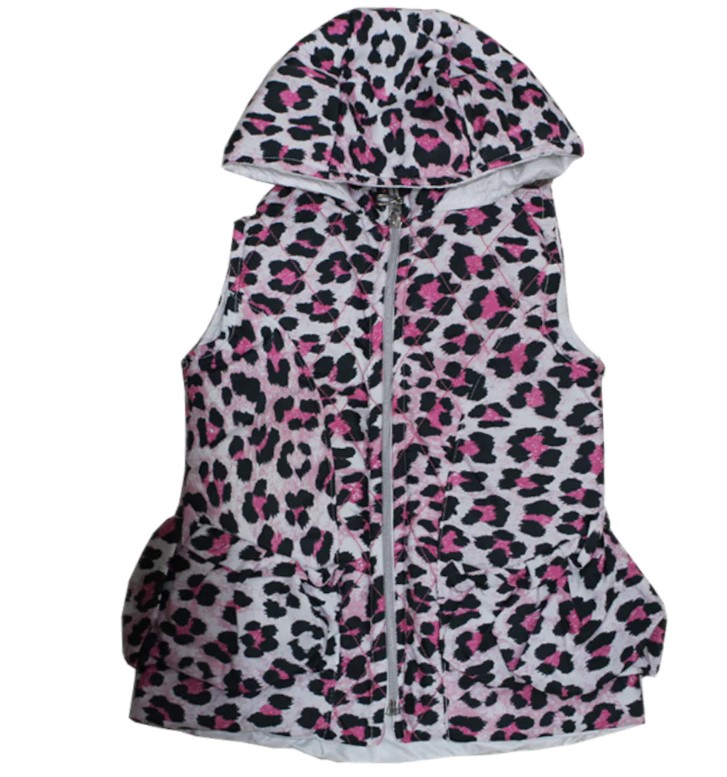 Ana sayfaÇocukKız Çocuk GiyimKız Çocuk Yelek & BoleroKız Çocuk 3-5 Yaş Leopar Desenli Kapşonlu Fermuarlı Şişme Yelek